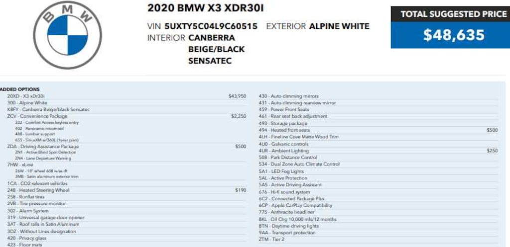 Service Work completed on this BMW X3 xDrive30i includes: Total Value: $1,060. Oil & Filter Change Using Original OEM Parts, Rear Glass Wiper Blade Replaced, Wheel/Tire Balance, Tires Rotated. Non-Smoker vehicle